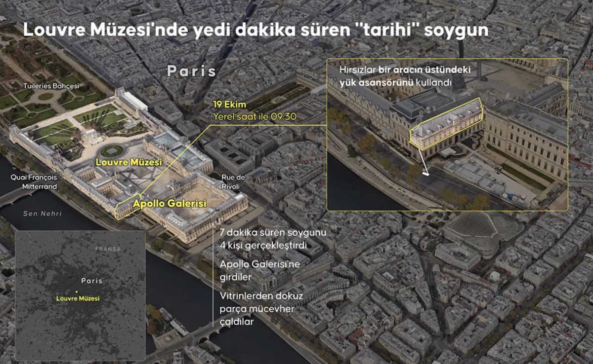 Fransa’nın başkenti Paris’te bulunan dünyaca ünlü Louvre Müzesi’nde yaşanan tarihi soygun, 19 Ekim’de gerçekleşmiş ve 88 milyon euro değerindeki tarihi eserler çalınmıştı.